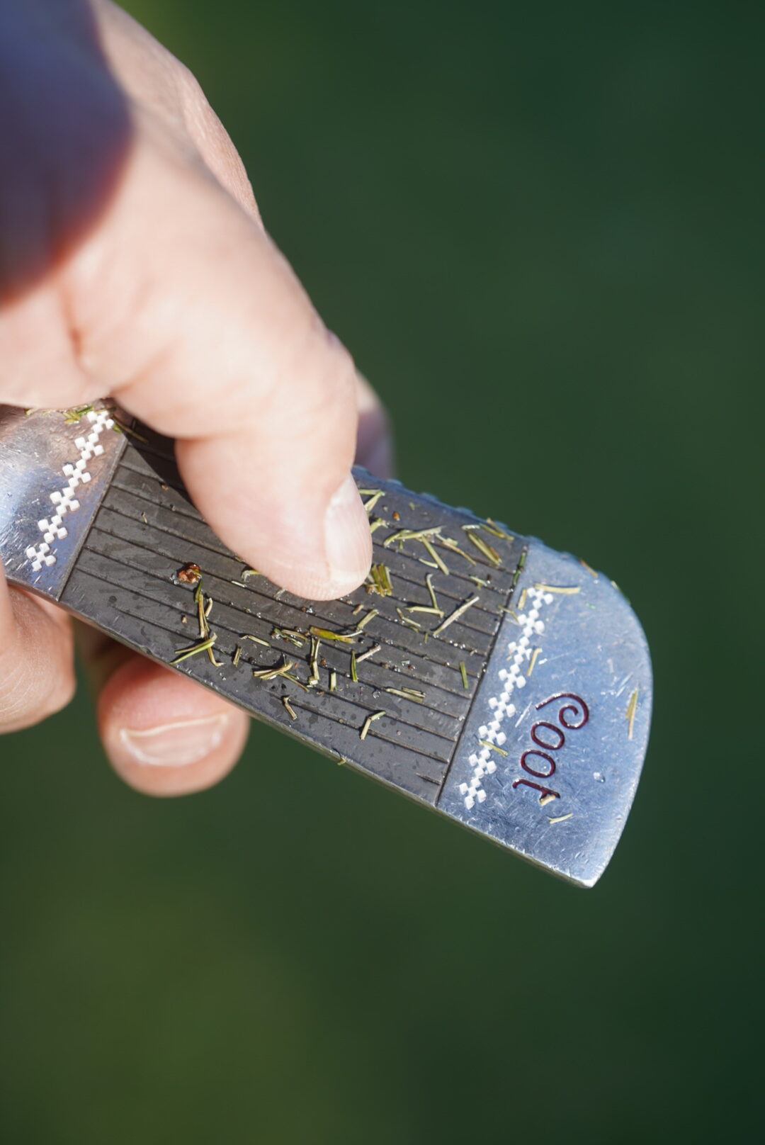 偽りの打球痕かもしれないが、たぶん私はこのパターが気に入っているのだ。だからこそ、毎朝打つし、毎朝フェース面を見て、指先で砂を払う。ちょっとガリっとくる感じで。