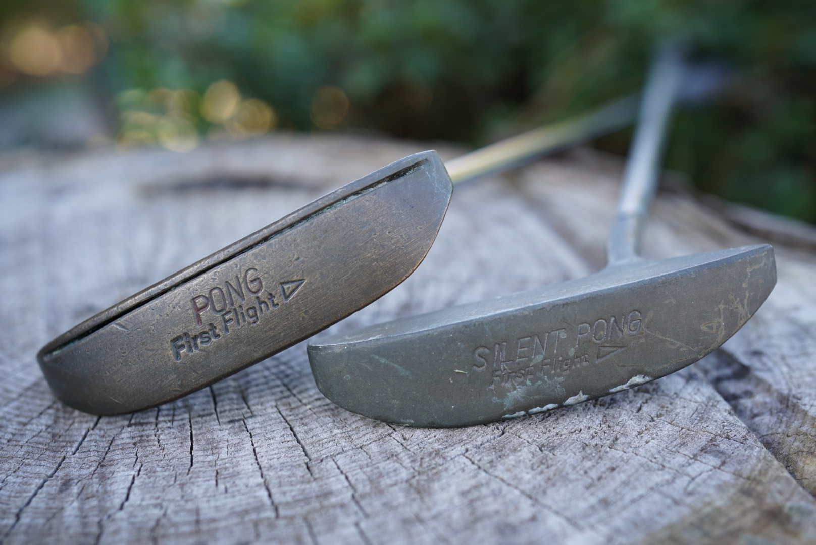 青木功のエースパターといえば、ファーストフライト社の「SILENT PONG(サイレント・ポン)」が有名だ。でも、なんで「サイレント」なんだろうと思っていたが、「PONG(ポン)」もあるとなれば話が早い。「ポン」はソールのフェース際にスリットが入っていてボールを打つと金属音がする。PINGの1AやANSERのようなキン音ではない。ナイキのSQ5900ドライバー的なポケ音だが、確かに大きな音が鳴る。
