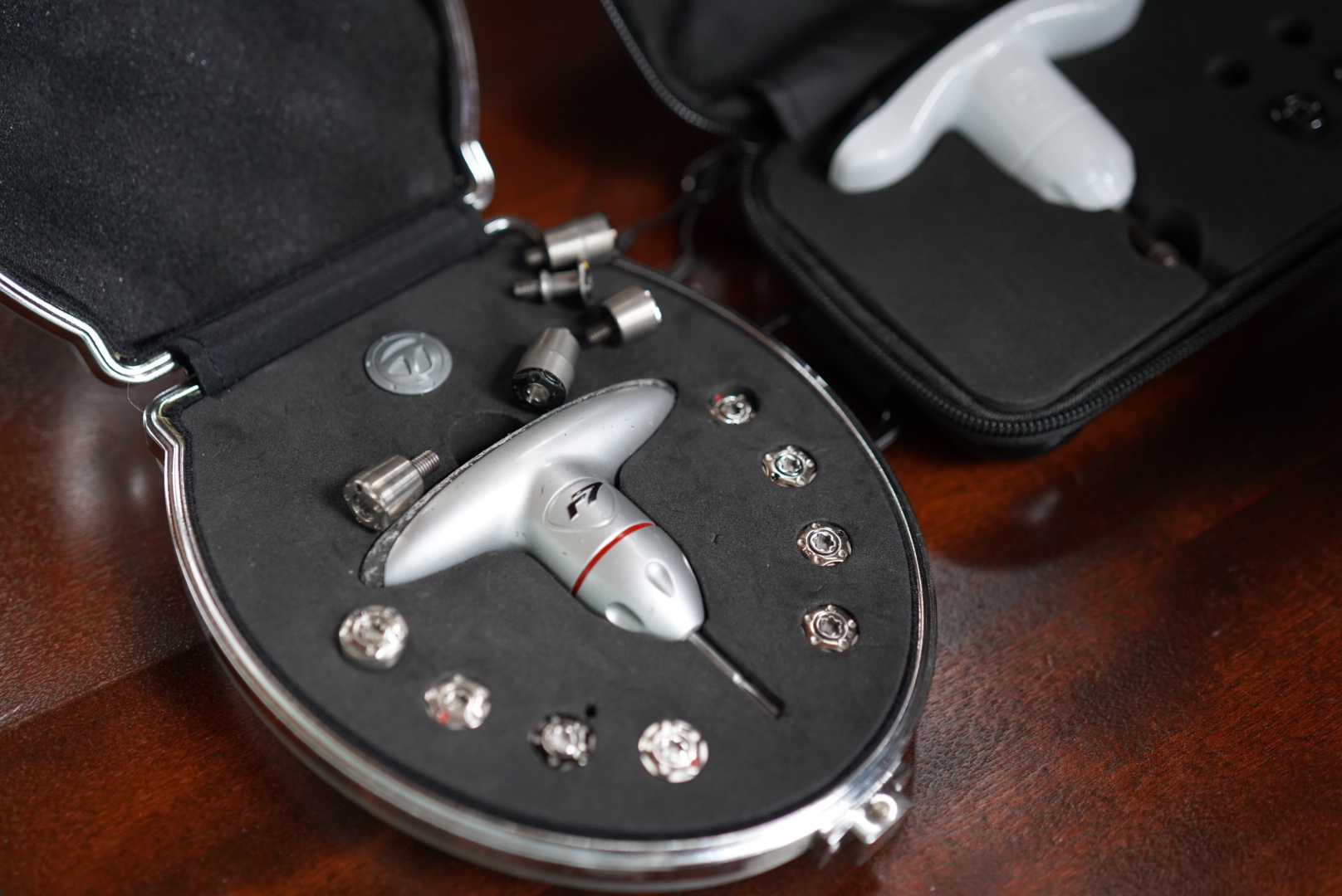 テーラーメイド r7用のムーバブルウェイトキットを納戸から引っ張り出してきた。どこにしまったのか忘れてしまい、事務所を調べ、倉庫を漁り、もうここになければ「誰かにあげちゃたんだ」ということになる最後の砦、 自宅の納戸をガサゴソした。そして、首尾よく発見した懐かしいシルバーのケースだ。