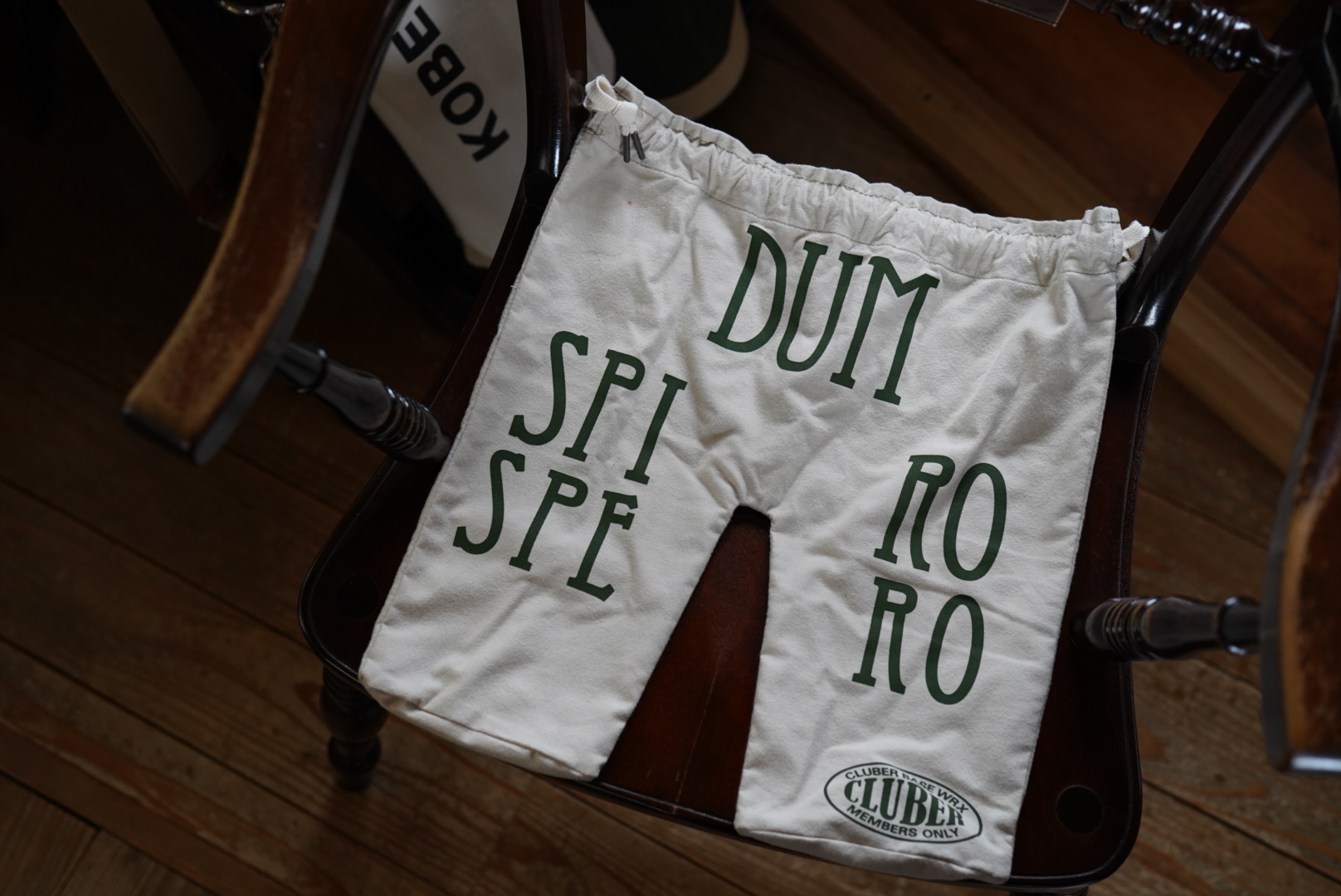 そして、岡部さんが提案してくれた生地が良かったのも問題(笑)これが洗うごとにどんどんいい表情になっていったのだ。店主自身も次作るより、今のこれを長く使って育てたい!とか思ってしまい、股が裂けてもチクチクと繕って大事に大事に使ったのだ。こっちで作った版ではなく、インドの工場が写真を見てだいたいで文字を並べてプリントしてきた「DUM SPIRO SPERO」もなんとも言えない味わいで、それこそが狙ってもできない独特の雰囲気となっていた。